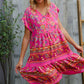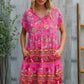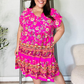 Boho Love Fuchsia Floral Print V Neck Dolman Sleeve Dress