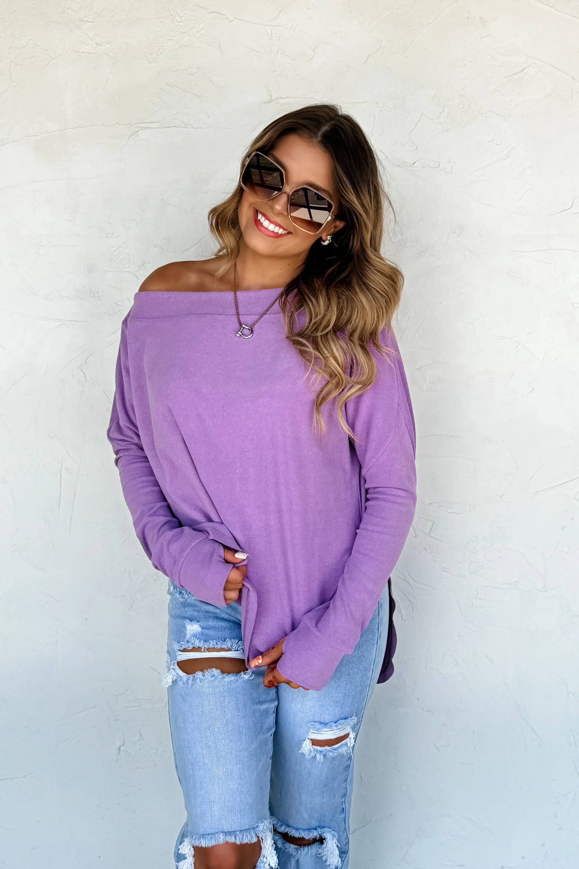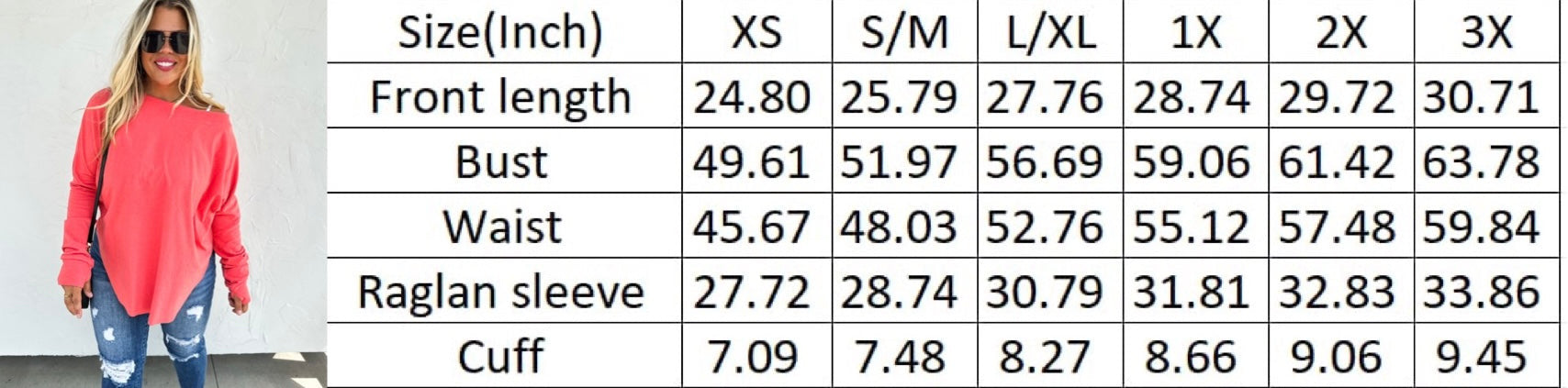 We spared no attention to detail in this SUPER soft sweatshirt! Light weight and so so stretchy. You wont find anything softer than this fabric! Features thumbholes, a boat neck to wear on or off the shoulder and the most flattering high/low hemline!