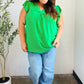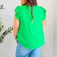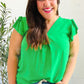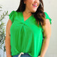 Sunny Days Kelly Green Banded V Neck Flutter Sleeve Top