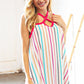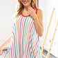 Look stunning and ready for any summer outing with this eye catching pink banded multi-vertical stripe tank top featuring a keyhole design. Pair with your fav denim.
