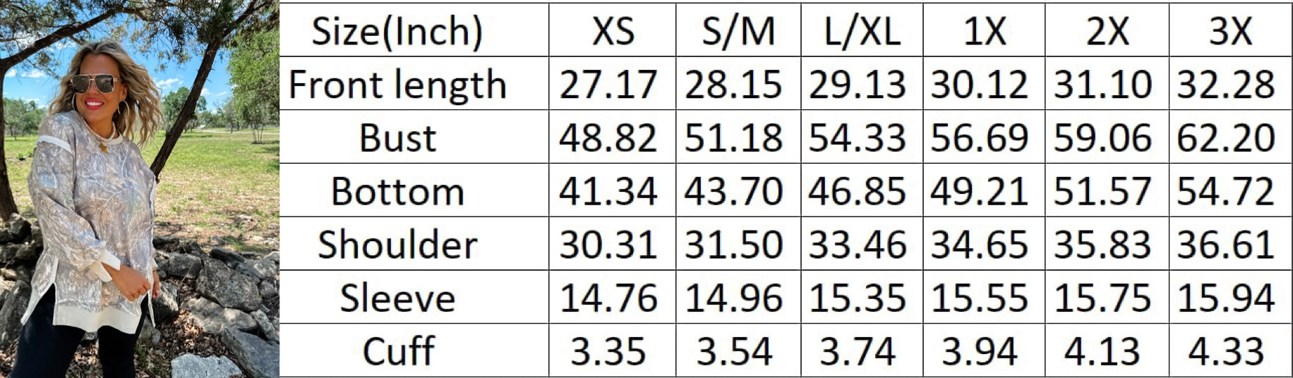 We spared no attention to detail in our sweatshirt! This forever timeless pullover is a slouchy, relaxed fit with exposed seaming, cute split cuff hem and ribbed trim detail! Has super soft "sweatshirt" feel on the inside! Now in a camo print!!