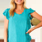Eyes On You Teal Scalloped V Neck Tulip Sleeve Top